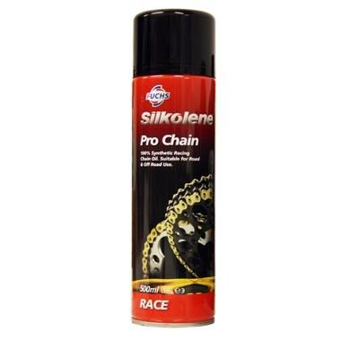 FUCHS Silkolene PRO CHAIN — це повністю синтетичний чистий і прозорий мастильний матеріал для ланцюгів спортивних мотоциклів, який утворює тонку плівку та під час використання відповідно до рекомендацій залишається на поверхні навіть за нанесенні в коротких перервах між заїздами.